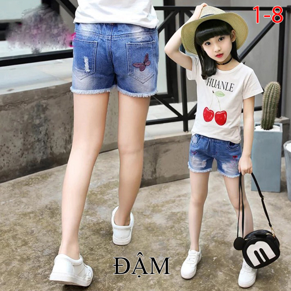 A128827 - Quần short jean bg lai tua thêu hoa, bướm co giãn_Size 1-8