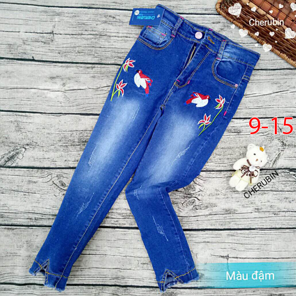 A159289 - Quần jeans thêu chim, co giãn nhiều_Size 9-15 Ri 7