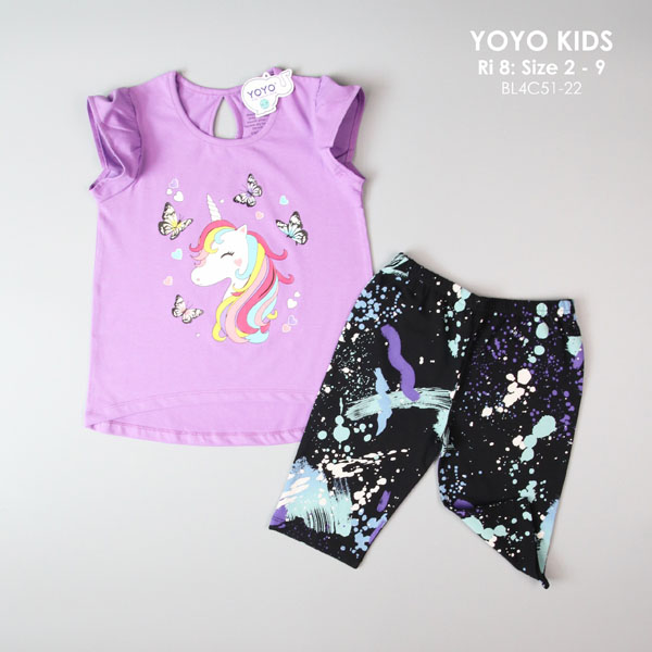 A229194 - Bộ YoYo BG thun cotton 4c Kỳ Lân Và Bươm Bướm quần lửng vẩy sơn_Size 2-9