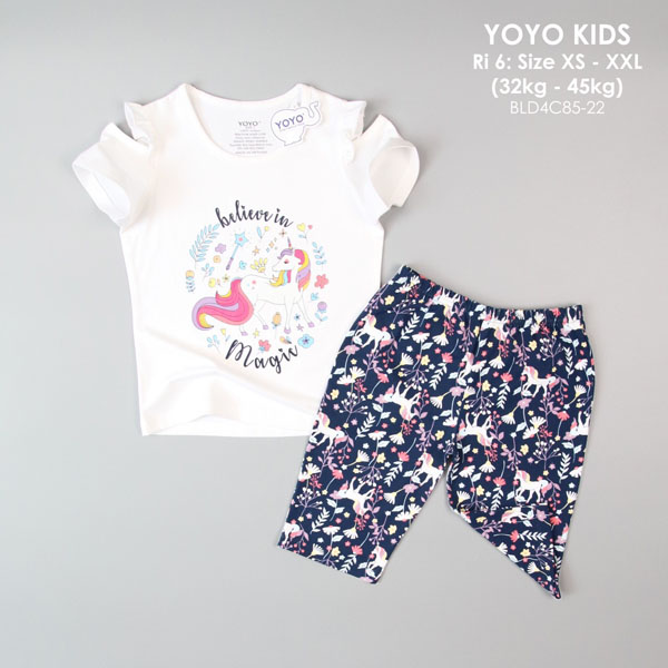 A237290 - Bộ YoYo BG thun cotton 4c Kỳ Lân Believe In Magic quần lửng in thắm_Size XS-XXL