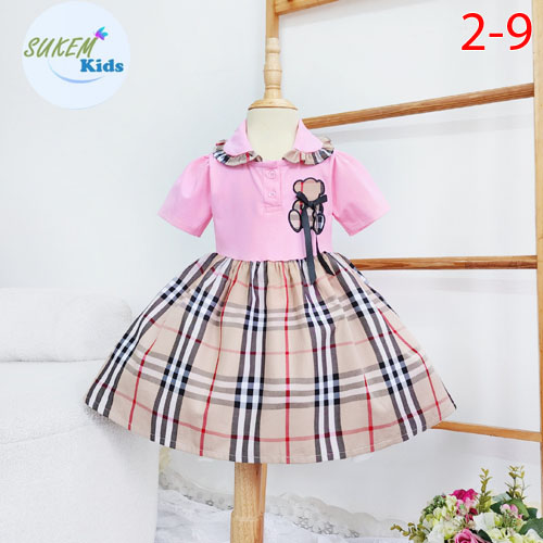 A343489 - Đầm may cổ bẻ nhún bèo thêu đắp gấu đính nơ 1 bên thun coton kết hợp với vải burberry_Size