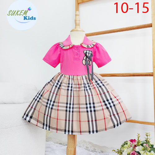 A343500 - Đầm may cổ bẻ nhún bèo thêu đắp gấu đính nơ 1 bên thun coton kết hợp với vải burberry_Size