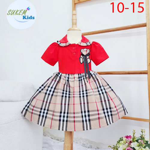 A343501 - Đầm may cổ bẻ nhún bèo thêu đắp gấu đính nơ 1 bên thun coton kết hợp với vải burberry_Size