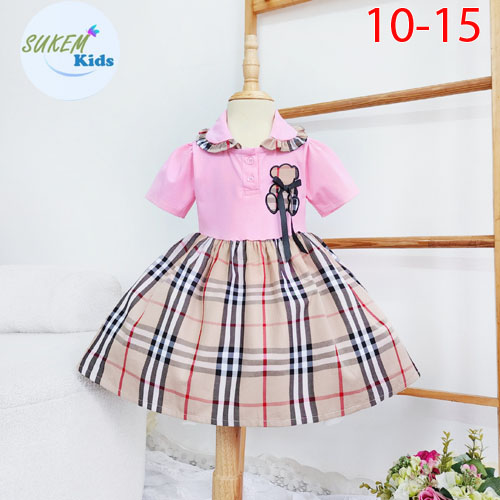 A343502 - Đầm may cổ bẻ nhún bèo thêu đắp gấu đính nơ 1 bên thun coton kết hợp với vải burberry_Size