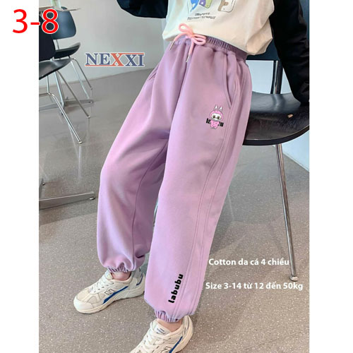 A345504 - Nexxi Quần jogger form rộng lưng thun bo lai, rút dây in hình LABUBU_Size 3-8