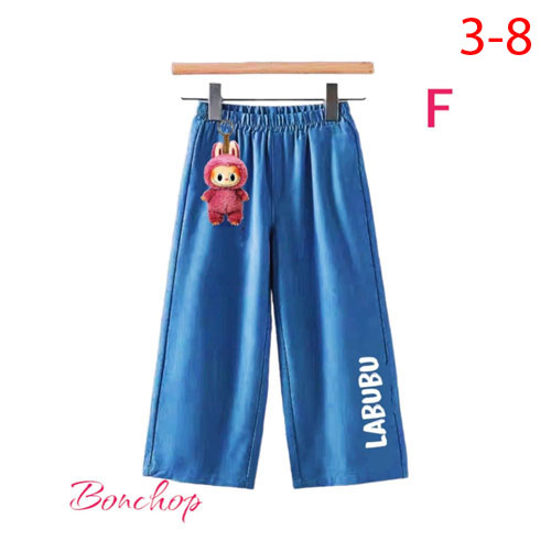A359134 - Quần jean ống rộng Labubu móc khoá cho bé Gái form ống to, lưng thun co giãn_Size 2-9