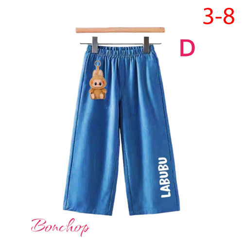 A359136 - Quần jean ống rộng Labubu móc khoá cho bé Gái form ống to, lưng thun co giãn_Size 2-9