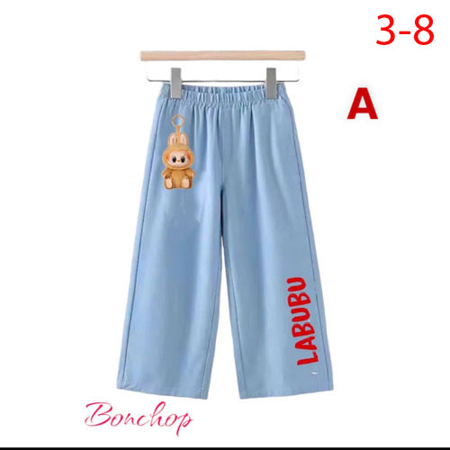 A359137 - Quần jean ống rộng Labubu móc khoá cho bé Gái form ống to, lưng thun co giãn_Size 2-9