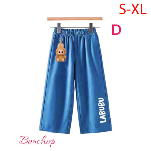 A359145 - Quần jean ống rộng Labubu móc khoá cho bé Gái form ống to, lưng thun co giãn_Size S-XL