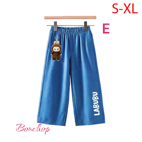 A359146 - Quần jean ống rộng Labubu móc khoá cho bé Gái form ống to, lưng thun co giãn_Size S-XL