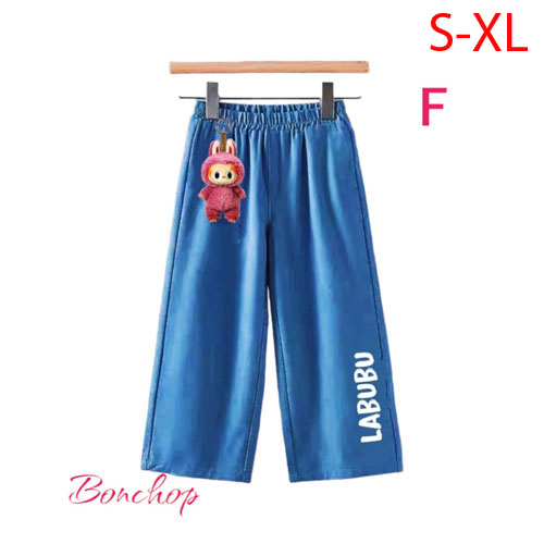 A359147 - Quần jean ống rộng Labubu móc khoá cho bé Gái form ống to, lưng thun co giãn_Size S-XL