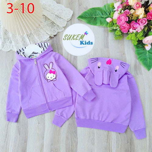 A359752 - Áo khoác đắp túi phía trước nón thêu đắp tai thỏ xinh với hình thêu đắp bông xù coton 4c b