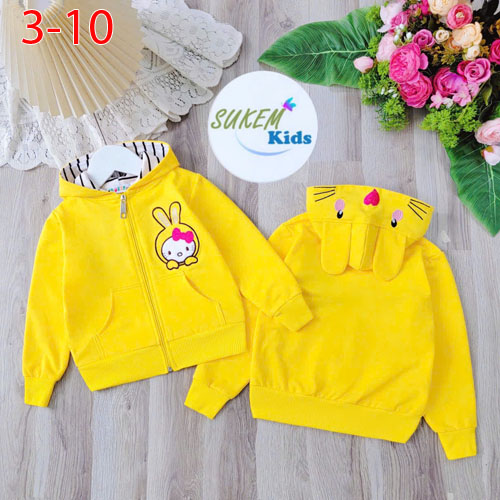A359753 - Áo khoác đắp túi phía trước nón thêu đắp tai thỏ xinh với hình thêu đắp bông xù coton 4c b