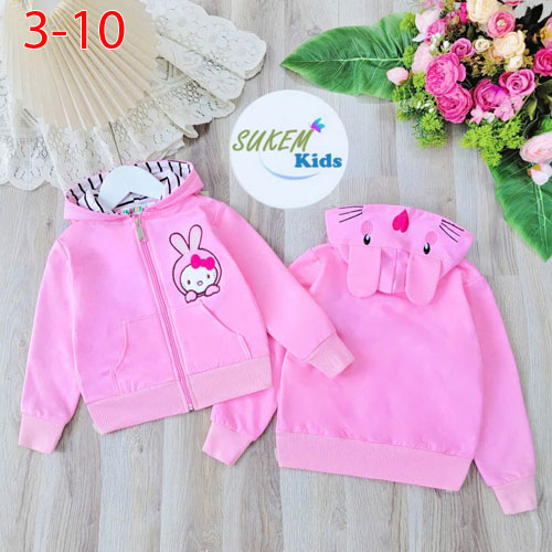 A359754 - Áo khoác đắp túi phía trước nón thêu đắp tai thỏ xinh với hình thêu đắp bông xù coton 4c b