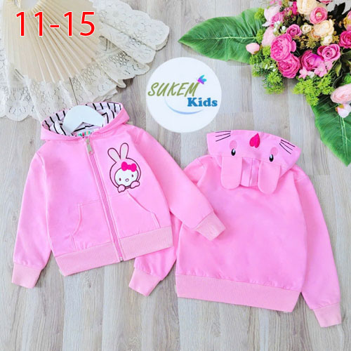 A359755 - Áo khoác đắp túi phía trước nón thêu đắp tai thỏ xinh với hình thêu đắp bông xù coton 4c b