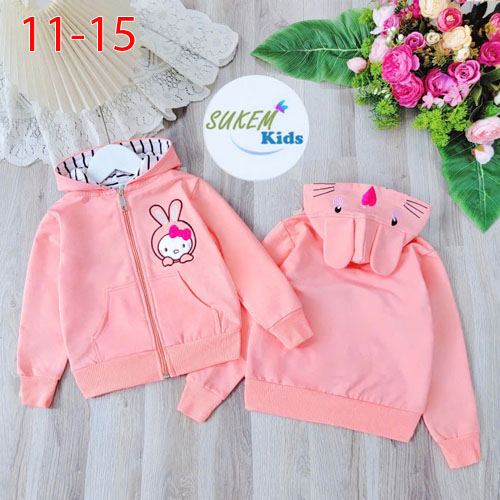 A359759 - Áo khoác đắp túi phía trước nón thêu đắp tai thỏ xinh với hình thêu đắp bông xù coton 4c b