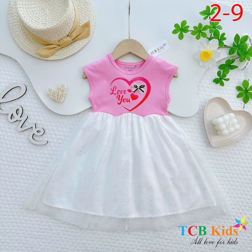A363002 - Đầm thun phối lưới kim tuyến trái tim bé gái_ Size 2-9