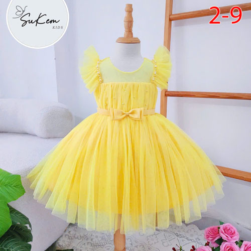 A365032 - Đầm may tay cánh tiên kết hạt châu xếp ly nhún lưới đính hạt châu 2 lớp woan bồng bềnh nhú