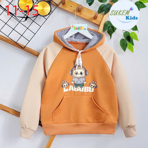 A368203 - Áo bé trai hoodies cool cực ngầu may đắp túi hình ép LABUBU_Size 11-15