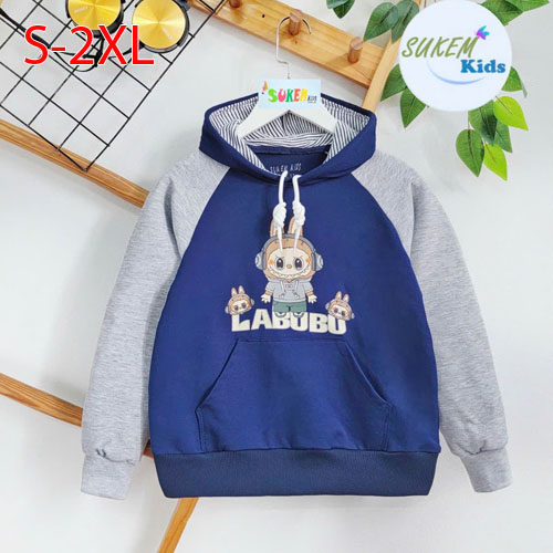 A368206 - Áo bé trai hoodies cool cực ngầu may đắp túi hình ép LABUBU_Size S-2XL