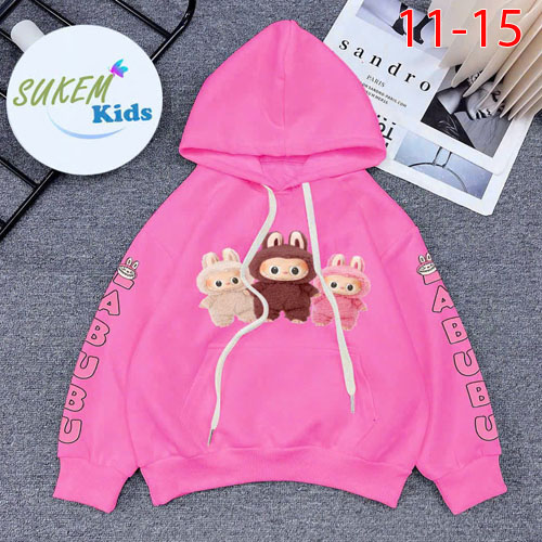 A370286 - Áo bé gái hoodies áo may đắp túi hình ép LABUBU_Size 11-15