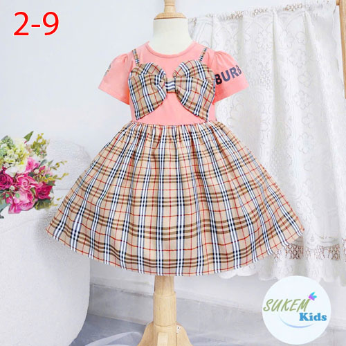 A373831 - Đầm may giả yếm Nơ to siêu cute áo ngắn tay in burberry phối vải thun coton_Size 2-9