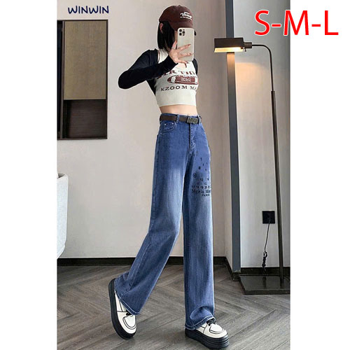 A378584 - Nexxi Win Win quần jean ống suông in chữ tạo điểm nhấn_Size S-L