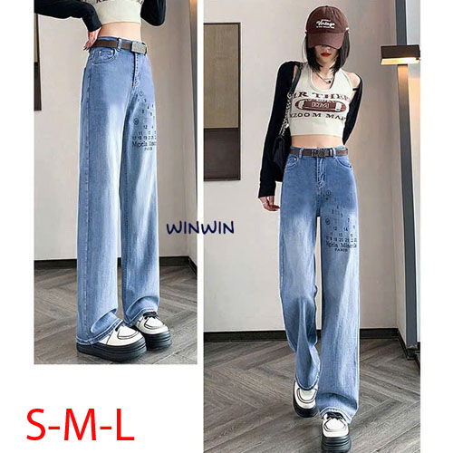 A378585 - Nexxi Win Win quần jean ống suông in chữ tạo điểm nhấn_Size S-L