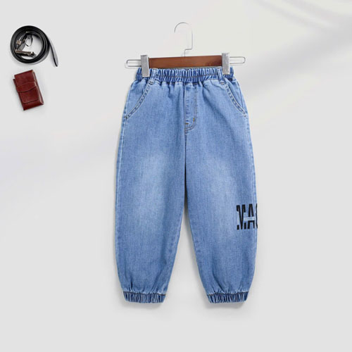 A380221 - Nexxi Win Win quần jean dài bé trai lưng thun bo lai form rộng in chữ_Size 9-16