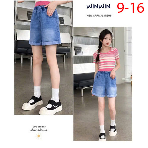 A380225 - Nexxi Win Win quần jean ngố cho bé gái form ngố (trên gối) Lưng thun thêu nơ túi sau_Size
