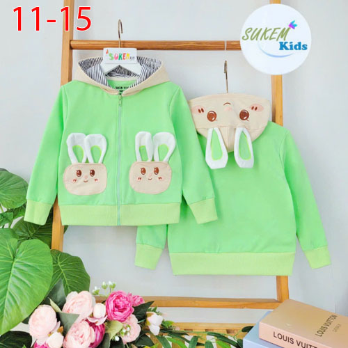 A381554 - Áo khoác bé gái đắp túi thỏ 2 bên may Nón có đắp tai thỏ bông xù 2 bên_Size 11-15