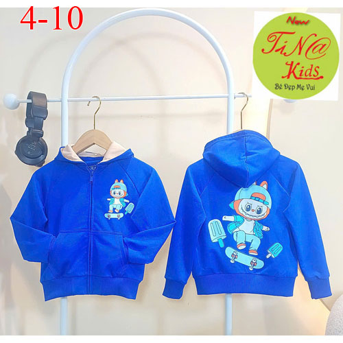 A382490 - Áo khoác bé trai chất Da cá 4c bo tay và lai đặt dệt in thêu Labubu_Size 4-10