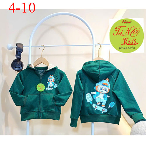 A382492 - Áo khoác bé trai chất Da cá 4c bo tay và lai đặt dệt in thêu Labubu_Size 4-10