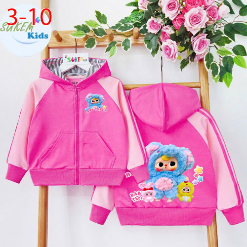 A382616 - Áo khoác ép BABY THREE May Nón 2 bên tay cắt phối chạy dây viền thể thao chất Da cá coton