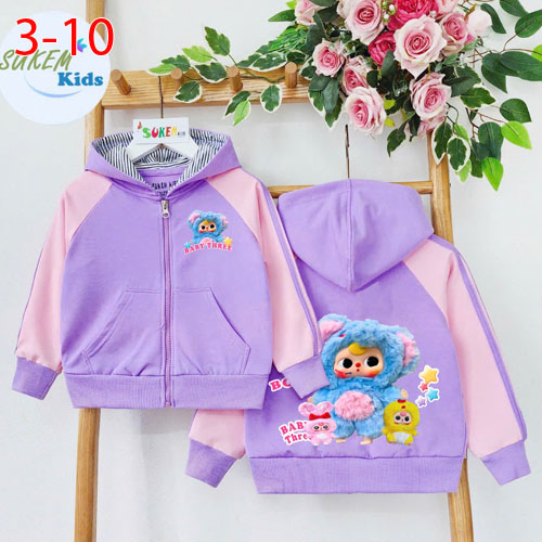 A382618 - Áo khoác ép BABY THREE May Nón 2 bên tay cắt phối chạy dây viền thể thao chất Da cá coton