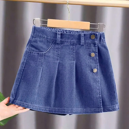 A383125 - Nexxi Win Win quần giả váy jean lưng thun, tà xếp ly đính nút_Size 3-8