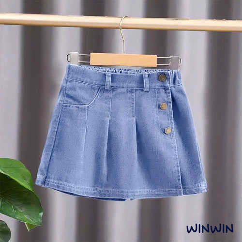 A383126 - Nexxi Win Win quần giả váy jean lưng thun, tà xếp ly đính nút_Size 3-8