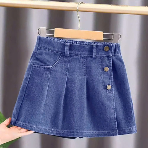 A383128 - Nexxi Win Win quần giả váy jean lưng thun, tà xếp ly đính nút_Size 9-14