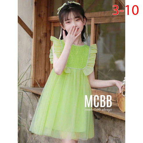 A383306 - Đầm dạo phố 2 lớp lưới mềm mịn 1 lớp lụa cotton hạt kết trước ngực_Size 3-10