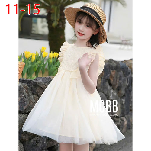 A383308 - Đầm dạo phố 2 lớp lưới mềm mịn 1 lớp lụa cotton hạt kết trước ngực_Size 11-15
