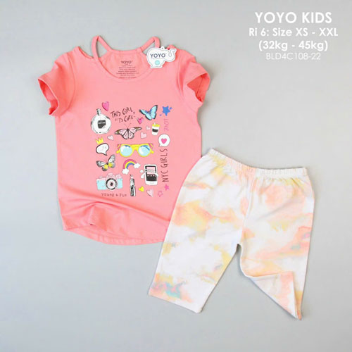 A386534 - Bộ quần lửng bé gái quần short kết hợp với áo kiểu hở vai_Size XS - XXL