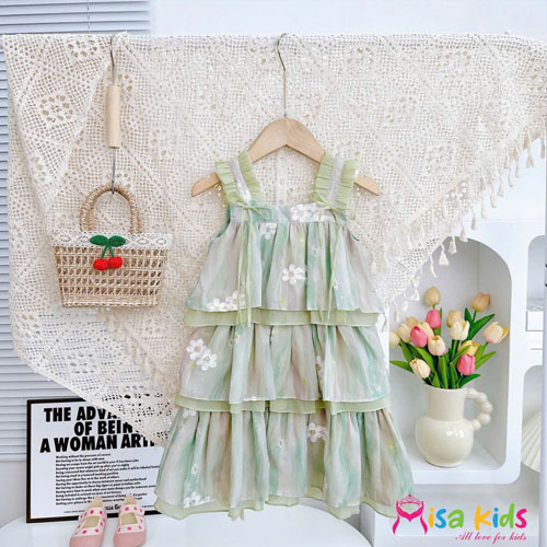 A387389 - Đầm xoè 3 tầng vải tơ thêu hoa siêu xinh_Size 1-10