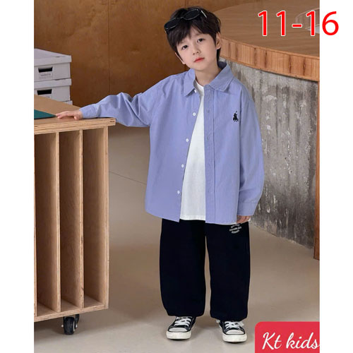 A388351 - Áo sơ mi bé trai dài tay thêu Logo cao cấp_Size 11-16