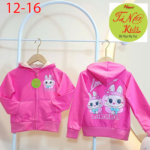A388952 - Áo khoác Hè Da cá 4c bo tay và lai đặt dệt in Labubu_Size 12-16