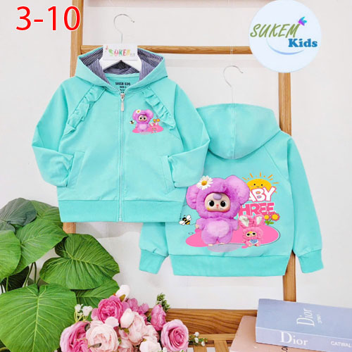 A389012 - Áo khoác hott trends ép BABY THREE may Nón nhún bèo 2 bên Da cá coton 4c bo tay và lai đặt
