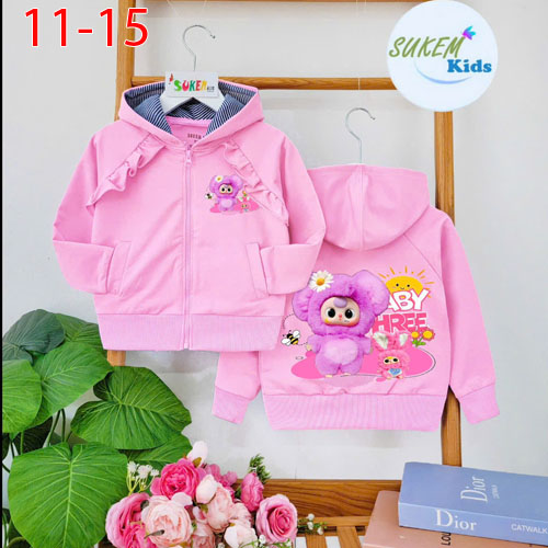 A389019 - Áo khoác hott trends ép BABY THREE may Nón nhún bèo 2 bên Da cá coton 4c bo tay và lai đặt