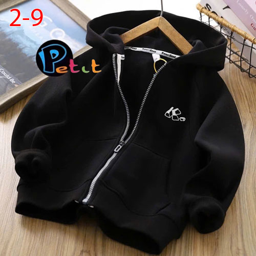 A390119 - Áo khoác cho bé trai may phối nón - đắp túi trước thêu logo_Size 2-9