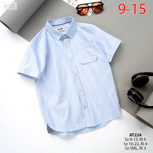 A394900 - Áo sơ mi ngắn tay bé trai thiết kế lịch lãm vải oxford sọc và oxford_Size 9-15