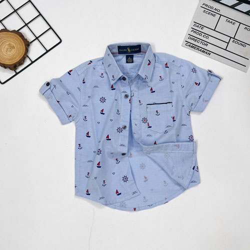 A395190 - Áo sơ mi bé trai màu tay ngắn cotton in họa tiết_Size 1-8