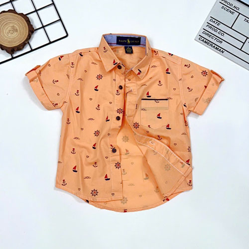 A395192 - Áo sơ mi bé trai màu tay ngắn cotton in họa tiết_Size 1-8